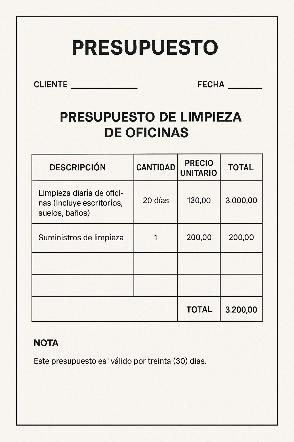 📌 4. Estructura de un presupuesto de limpieza de oficinas