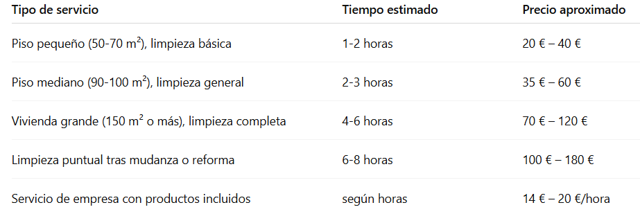 Para limpiezas básicas y periódicas, los precios rondan los 30 € - 60 € por servicio en pisos medianos.